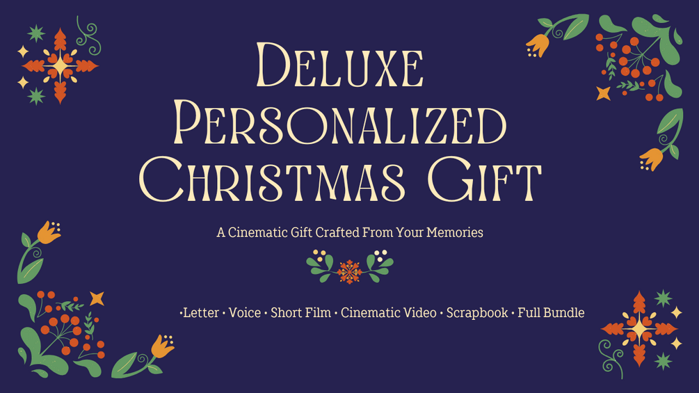 ✔ Short Christmas Video (8-10sec) AI generated ✔ Premium Voice Message (MP3) AI generated ✔ Digital Scrapbook (1-2 pages) ✔ Animated Christmas GIF ✔ Christmas Card (PNG) ✔ Printable Postcard (PNG) ✔ Luxury Gift Webpage Mockup (PNG) ✔ Personalized Christmas Letter (PDF) All delivered together as a beautifully organized ZIP file.